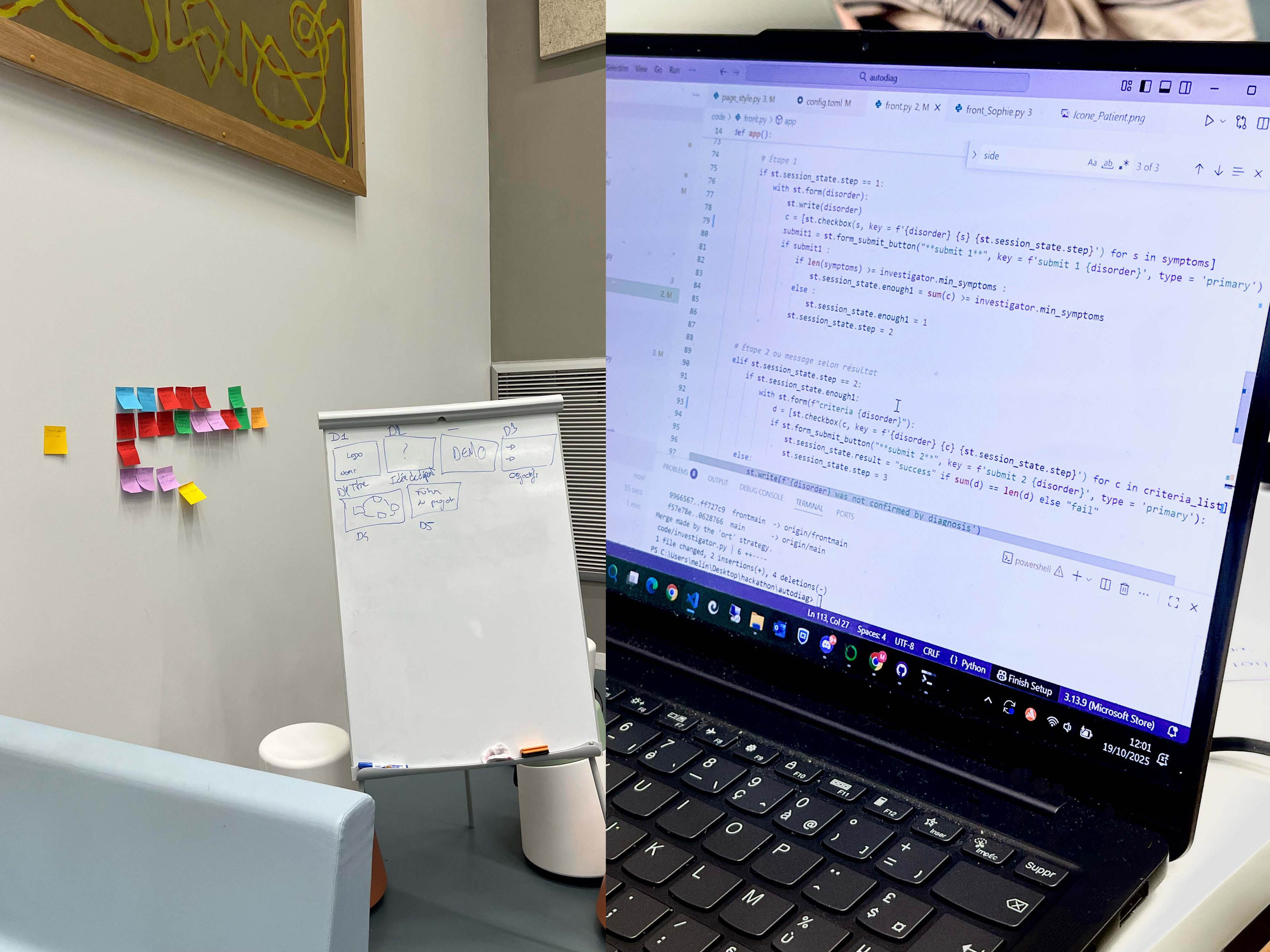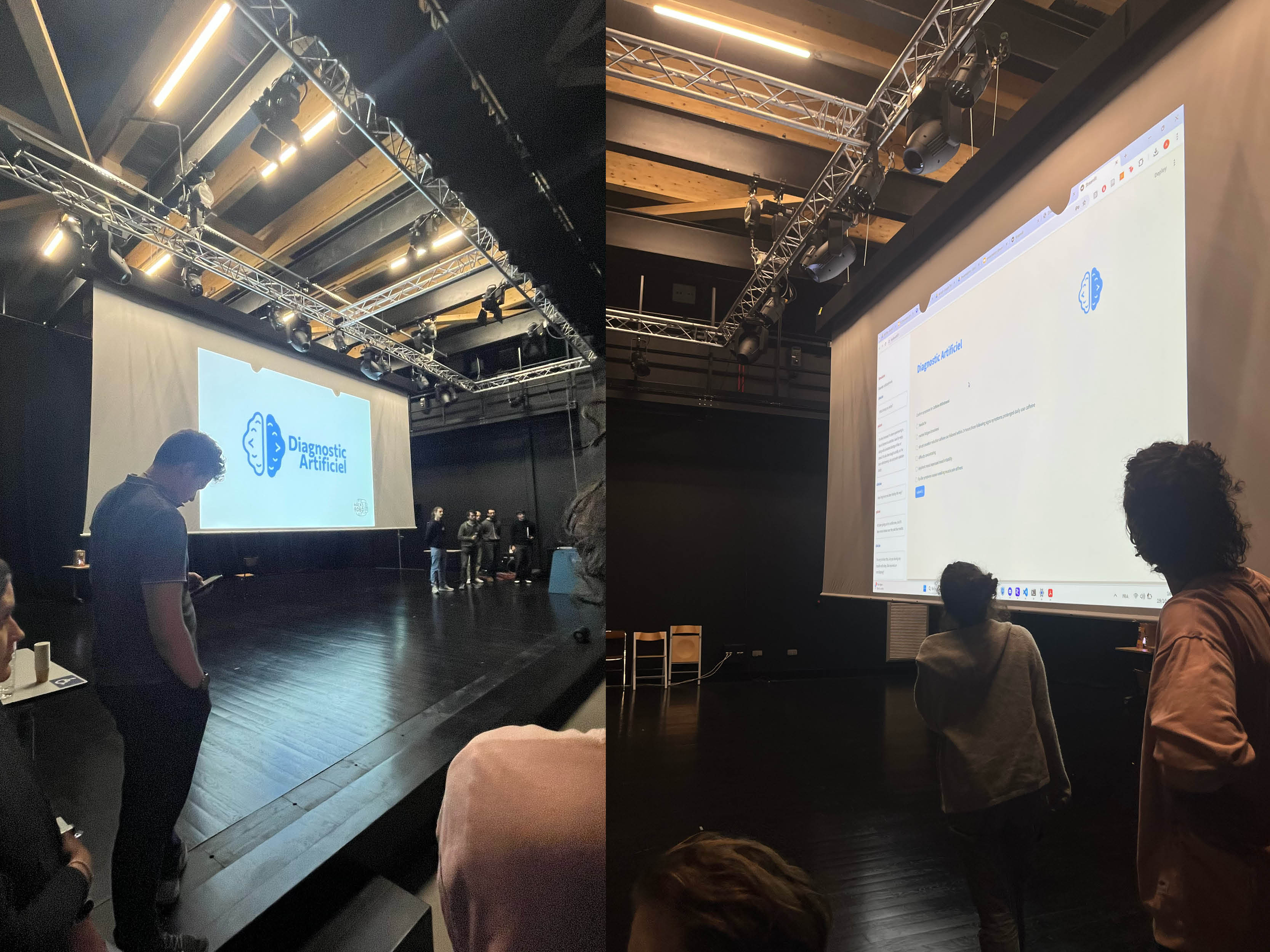 Le projet a été lauréat de 4ème édition de hackathon et a reçu le prix Inria Startup Studio, reconnaissance qui valide la pertinence scientifique et entrepreneuriale de la démarche. Ce travail m’a appris à articuler design d’interface et architecture algorithmique, et à penser un outil médical comme un système socio-technique où chaque choix visuel engage une responsabilité clinique. La suite du projet viserait la construction d’un profil patient enrichi, intégrant les dossiers médicaux, les données issues de « Mon espace santé » (Ameli), ainsi qu’une captation vocale, sous réserve de l’accord du patient, afin de permettre une analyse plus dynamique et plus pertinente des réponses. L’ensemble reposerait sur un chiffrement de bout en bout et un hébergement sur des serveurs certifiés, avec contrôle strict des accès. Le système demeurerait un outil d’assistance visant à réduire les biais cognitifs et à structurer l’exploration clinique, la décision diagnostique finale relevant du médecin.